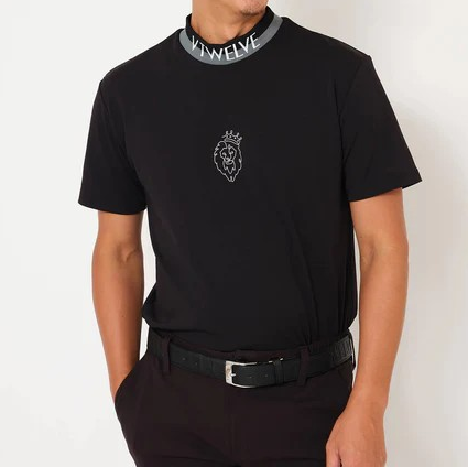 ネックのロゴ入りバイカラージャガードがポイントのモックネック。